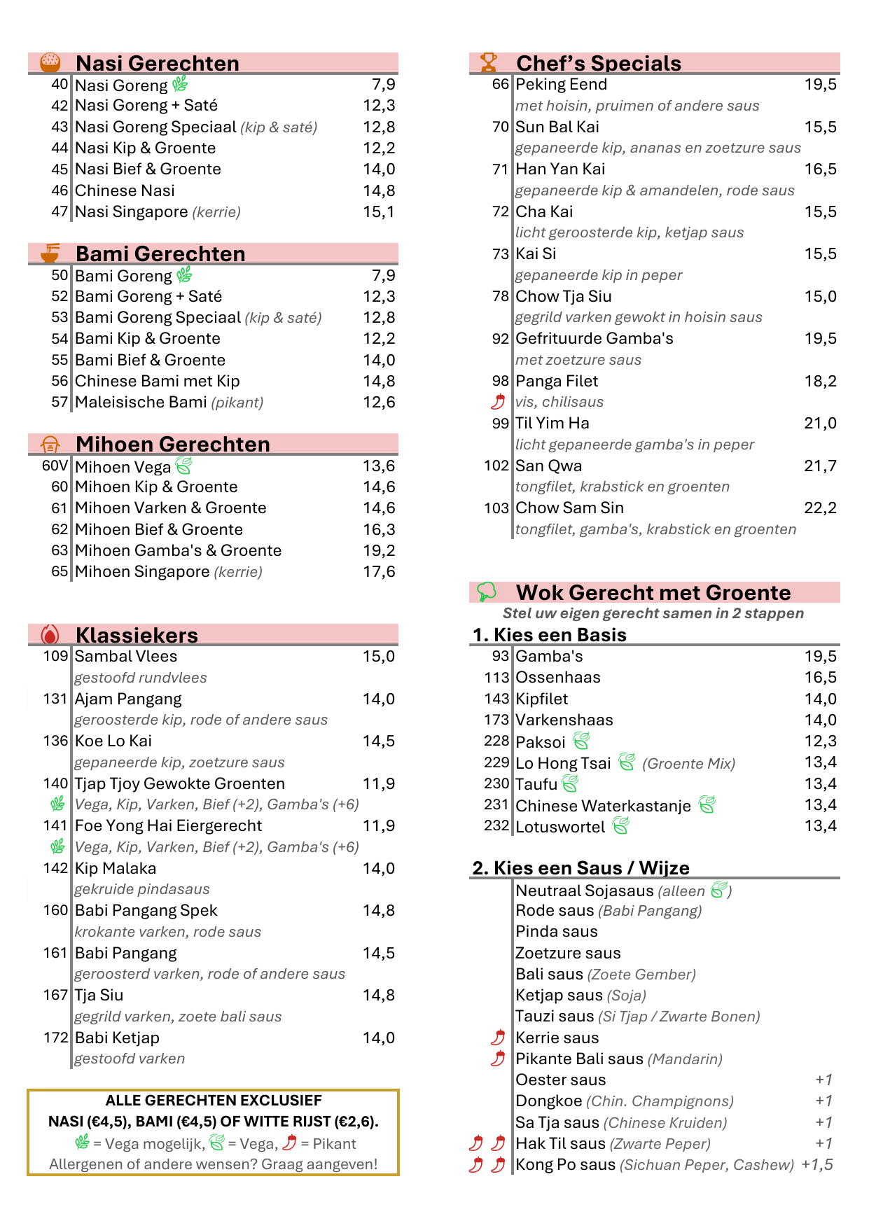 of tegen een kleine meerprijs nasi, bami of mihoen